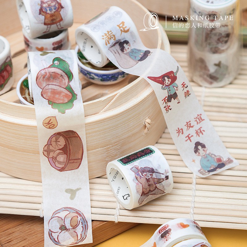 Cuộn Băng Keo Giấy Washi 300 Cmx1.5Cm Họa Tiết Hoạt Hình Dễ Thương Trang Trí Sổ Tay Diy